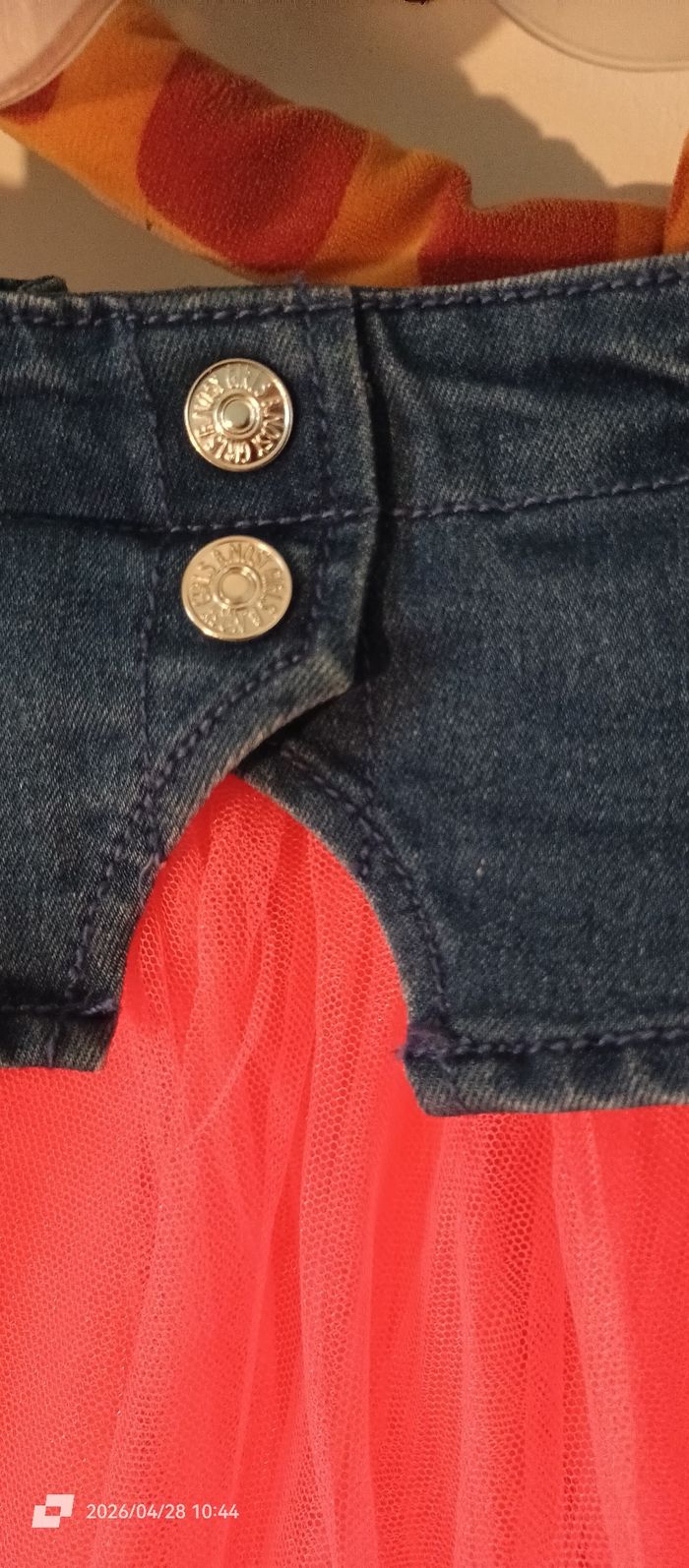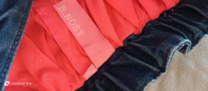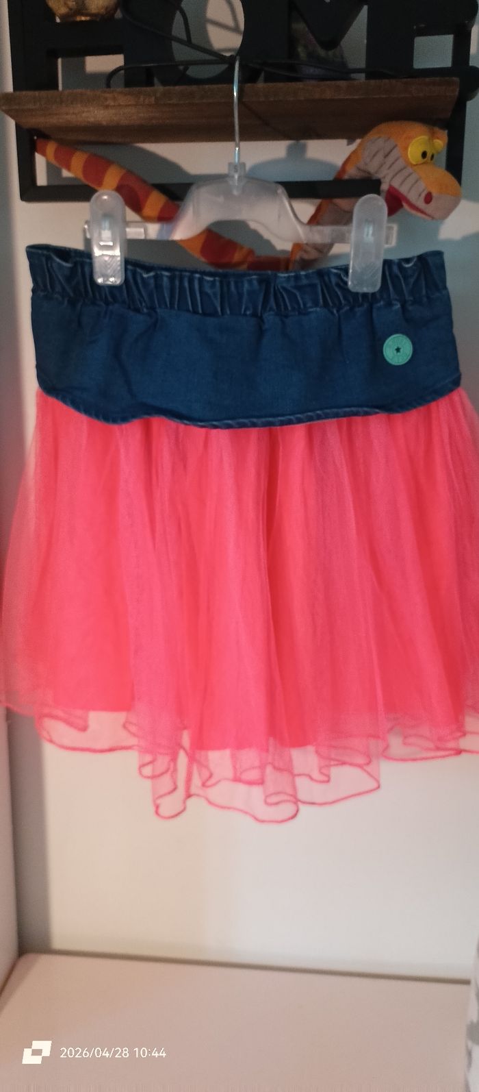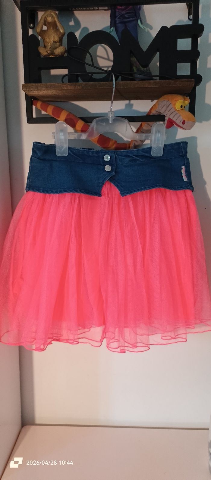 Bonjour Je vend cette jupe rose fluo et ceinture élastique derrière en jean. Taille 13/14ans Merci
