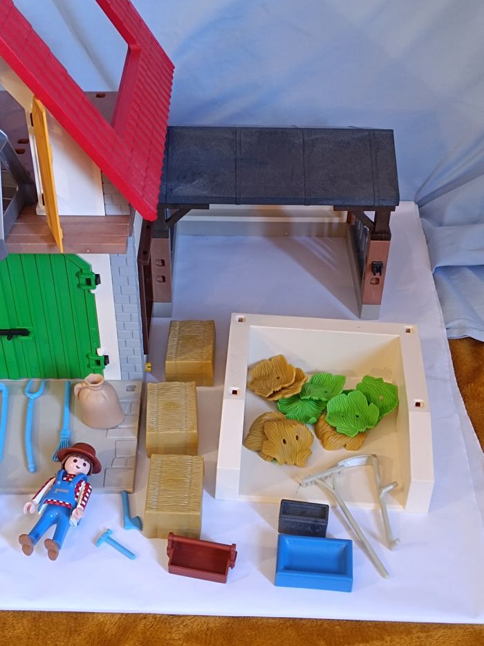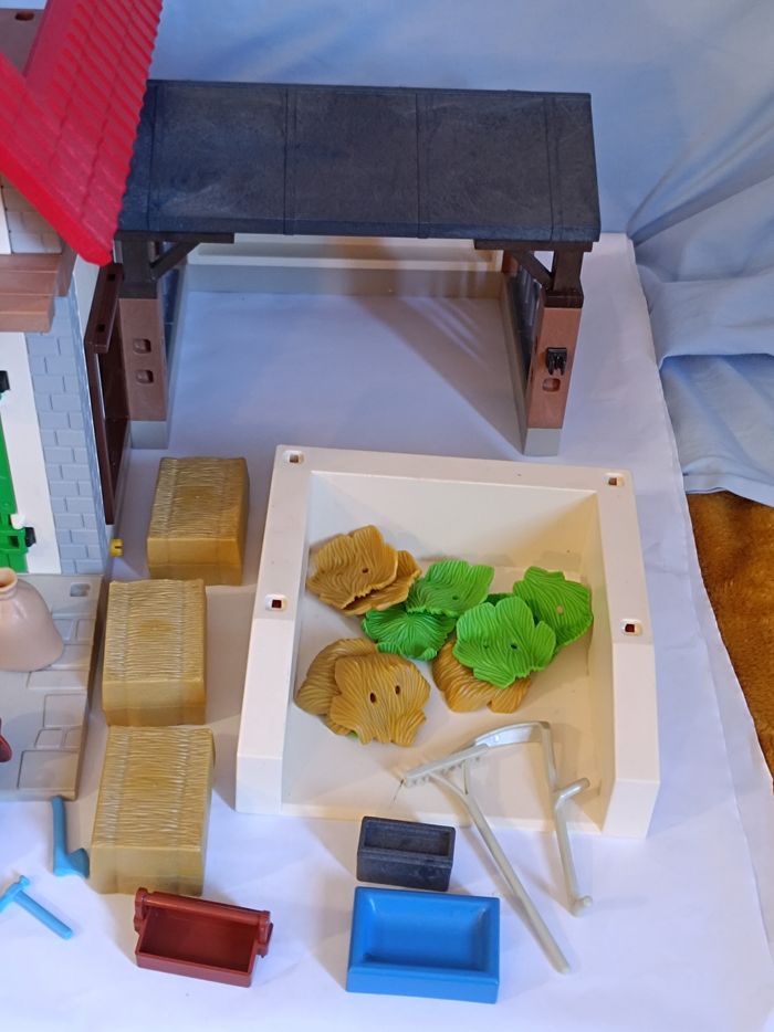Ferme playmobil 4490 manque tabouret brouette Faucille 2 abreuvoirs Rajouté faux râteau 2 abreuvoirs différents