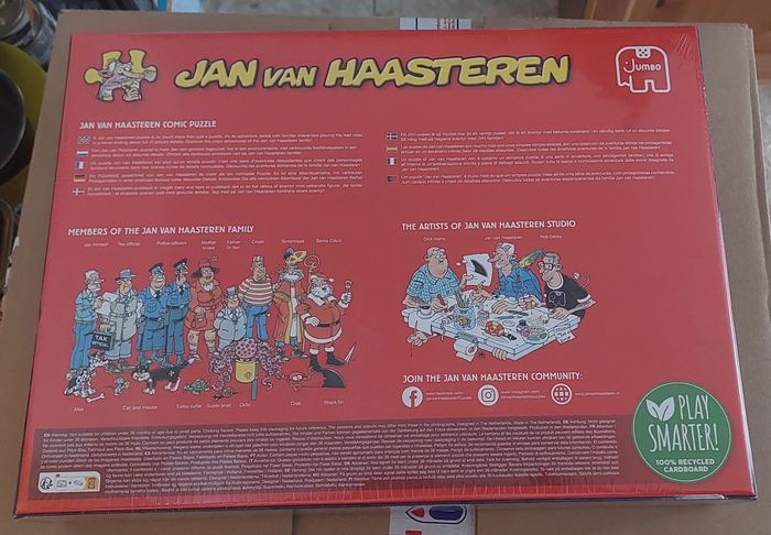 Un puzzle Jan van Haasteren de 1000 pièces avec des illustrations extrêmement détaillées, colorées et surtout amusantes. Chaque pièce de puzzle est unique et ajustée et se caractérise par un effet sans couture. Le puzzle fini ressemble à une affiche et peut être parfaitement accroché. Le carton et le papier utilisé sont recyclés dans le respect de l'environnement. Le puzzle est fabriqué aux Pays-Bas. Produit neuf non ouvert, traces possibles sur la boite. Ventes exclusivement au profit de l'association Les Félins de l'Eyre, pour le sauvetage de chats errants. (retrouvez nous sur Facebook)