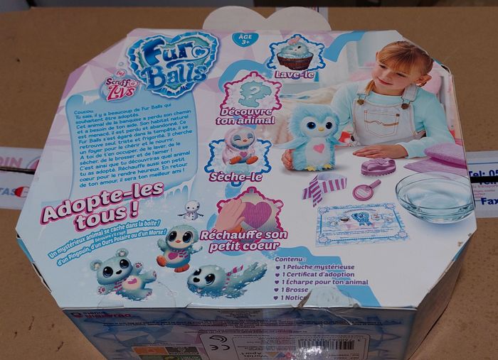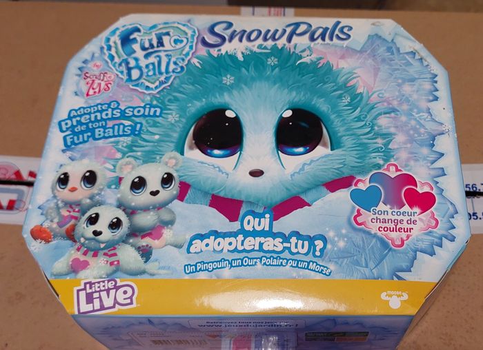 Découvrez les peluches Fur Balls Snow Pals ! Cet animal de la banquise souhaite lui aussi être adopté. Cachée dans sa boite vous allez découvrir une boule de poils bien triste et toute sale. A vous de laver votre Snow Pals, de le sécher de le coiffer et surtout de l’aimer pour le transformer en le plus adorable des compagnons ! Quel animal allez-vous découvrir : un ours polaire, un morse ou un pingouin ? Cette petite peluche a un coloris unique : un pelage satiné et givré de couleur vert menthe à l’eau. Elle a aussi un cœur brodé sur son ventre, bleu au départ qui devient rose au lavage et séchage, et une écharpe. Produit neuf non ouvert, traces possibles sur la boite. Ventes exclusivement au profit de l'association Les Félins de l'Eyre, pour le sauvetage de chats errants. (retrouvez-nous sur Facebook)