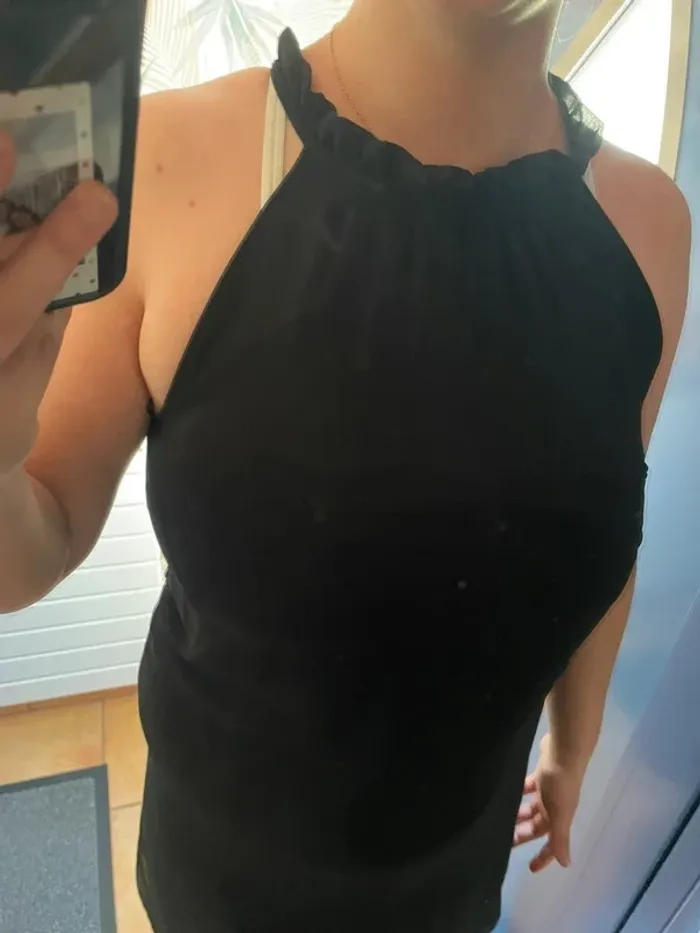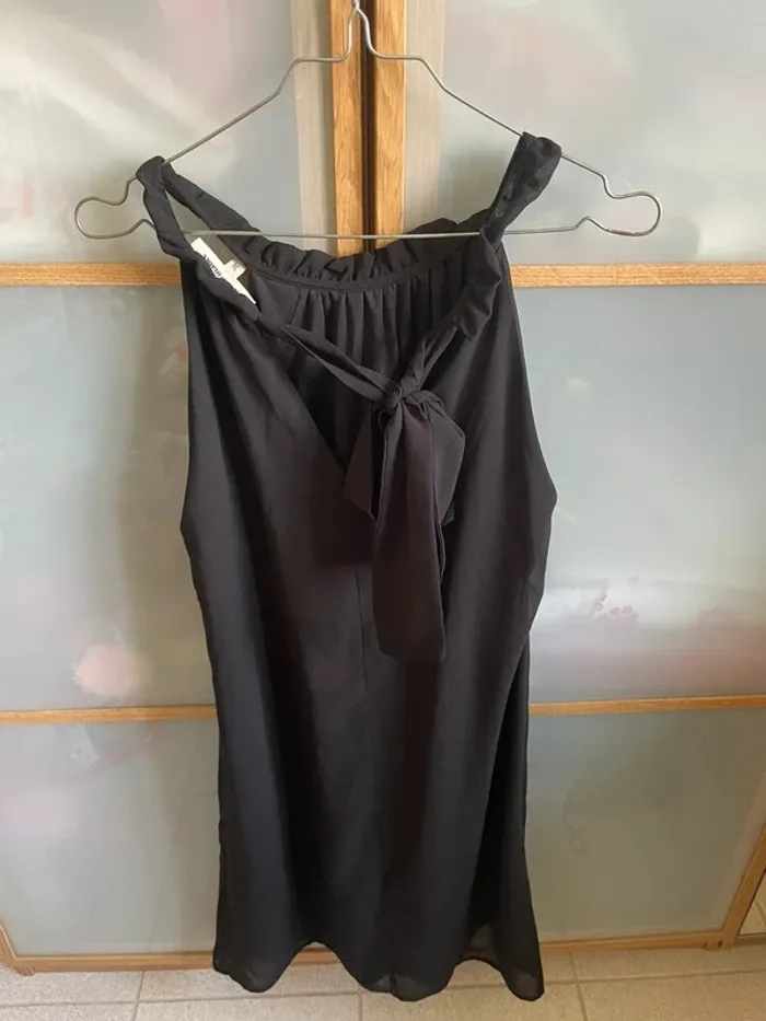 jamais porté, il y a un nœud derrière pour fermer la robe Elle est souple et a une doublure qui descend en dessous des fesses