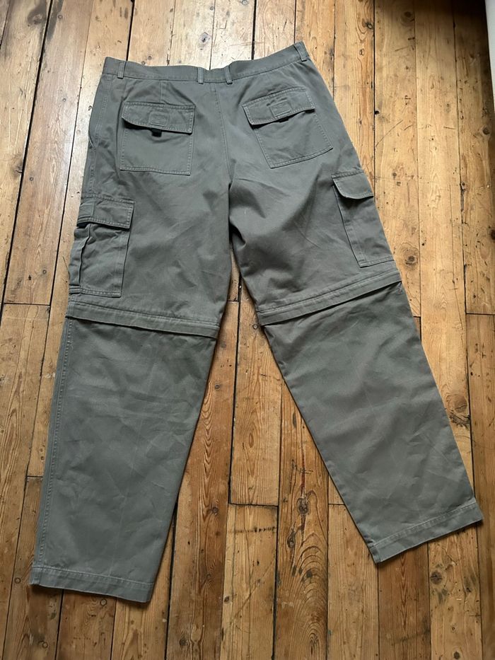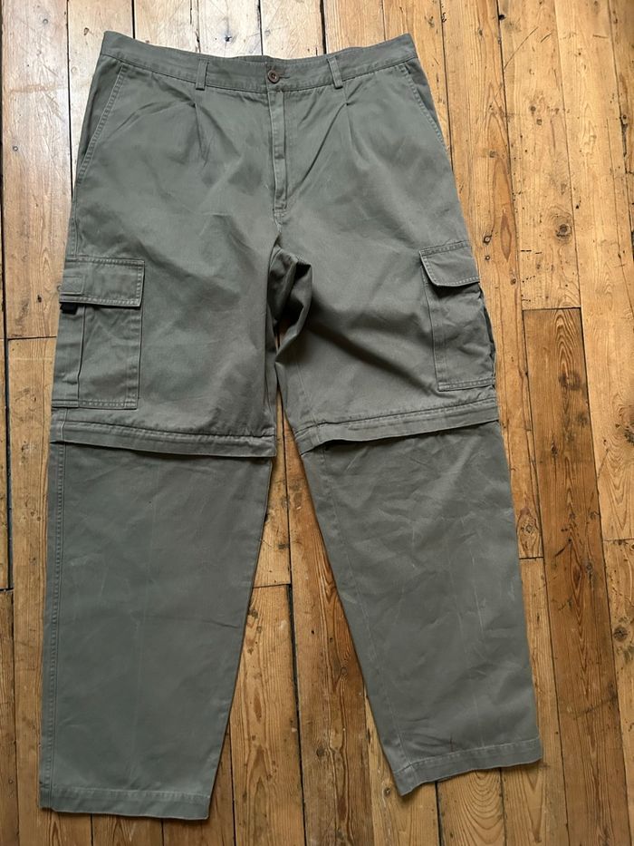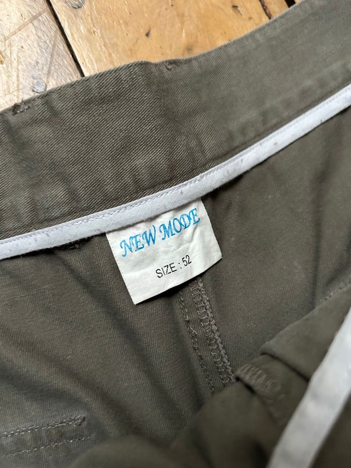 Pantalon short cargo kaki Taille 52 sur l’étiquette, je trouve qu’il correspond plus à un 46 voir toutes les mesures ci dessous 100% polyester New mode La ceinture mesure à plat 47 cm Longueur milieu devant 31,7 cm Longueur côté 107 cm ( 59,5 cm version short) Longueur entre jambe 78,7 cm ( 30,5 cm version short) Largeur à plat bas du short 30,7 cm Largeur à plat bas des jambes 21,8 cm