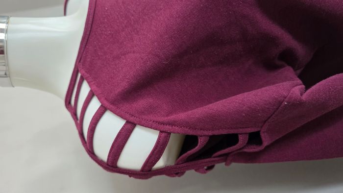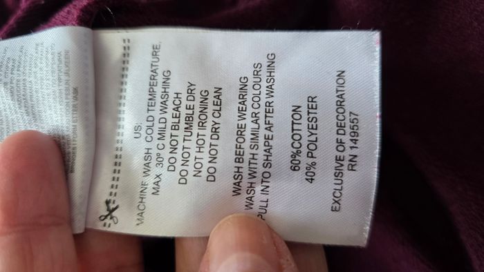 sweat fin bordeaux épaules ajourées taille XL bon état présentes quelques fines bouloches (voir photo 4) normale pour cette matière rien de méchant je le portait sans que çà ne dérange je m'en sépare car il ne me va plus