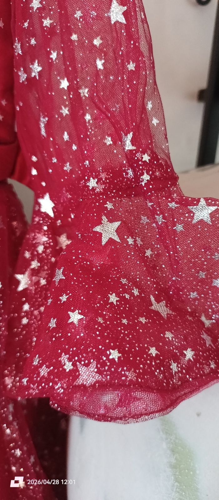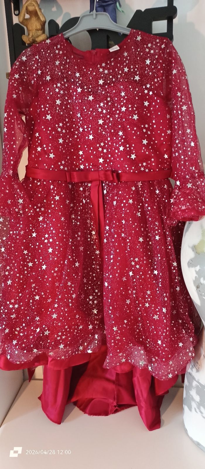 Bonjour Je vend cette robe de Noël Asymétrique Manches 3/4 Se noue dans le dos Le rouge est plus foncé que les photos elle est dans le bordeaux. Écrit 160 mais taille plus petit 12/13ans. Merci