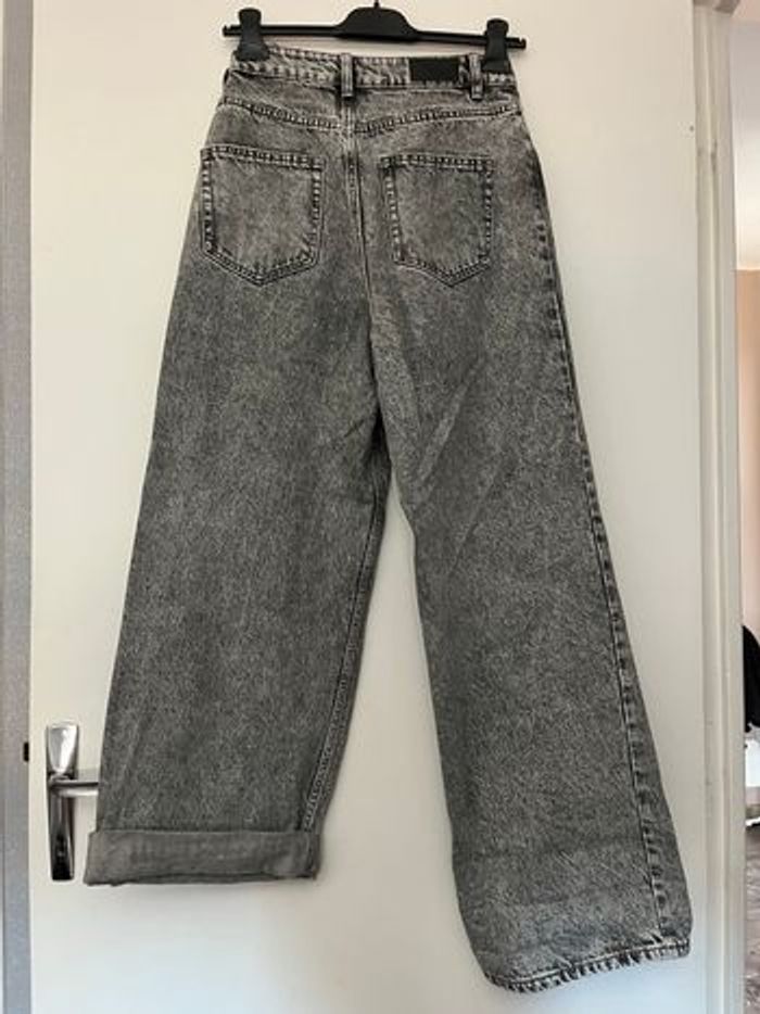 Jean taille haute gris coupe droite, confortable et porter quelque fois.
