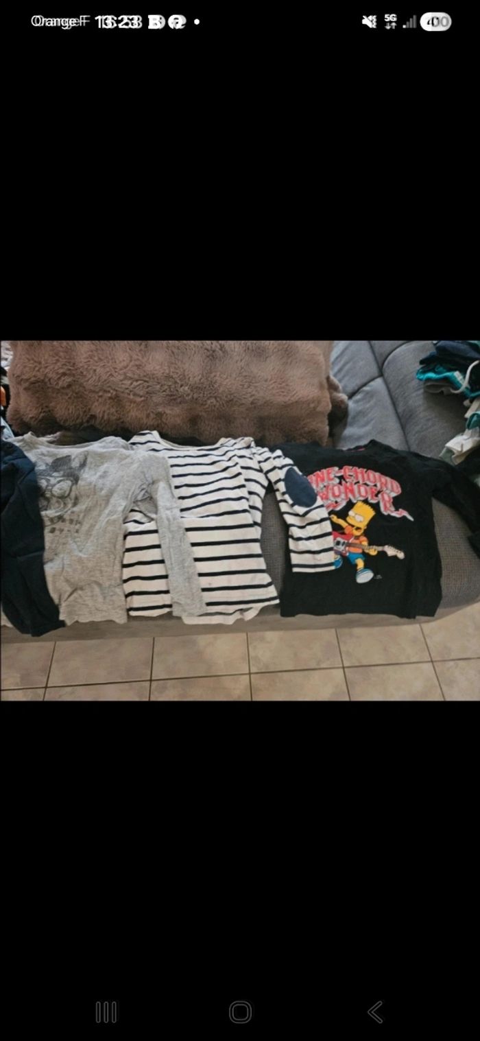 Lot de 49 pièces - 9 shorts - 3 débardeurs - 13 tee shirts manches courtes - 18 tee shirt manches longues - 3 sous pulls col roulé - 3 chemises Tout en tres bon etat petit prix Lot complet