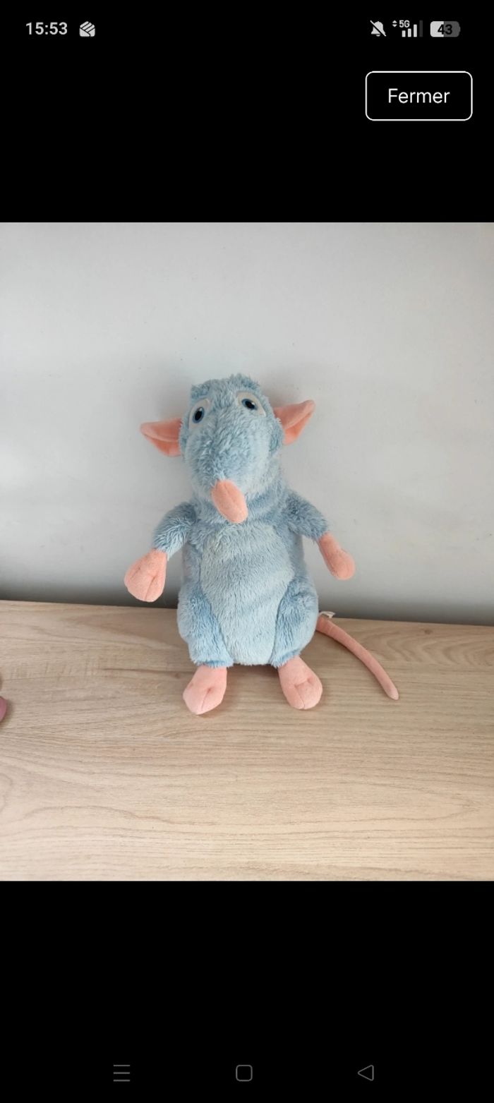 Peluche aimantée sur épaule rat Rémy ratatouille