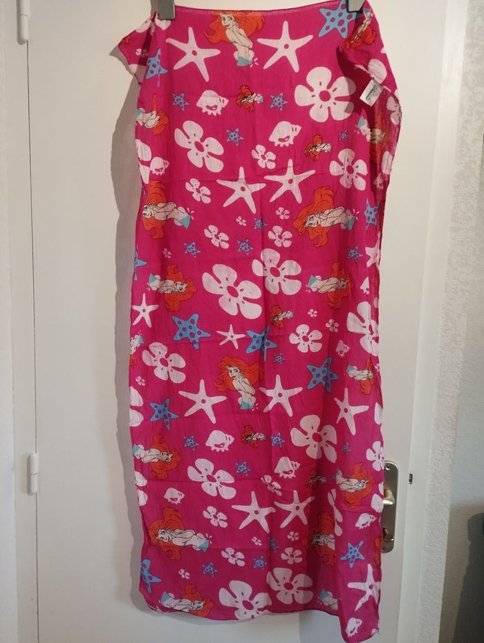 Je vends ce paréo de la marque Disney, jamais utilisé. Parfait pour accompagner les enfants à la plage. Dimensions : environ 1m10*55cm Couleur : Rose Thème : Petite sirène Comme neuf