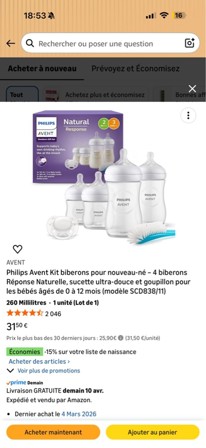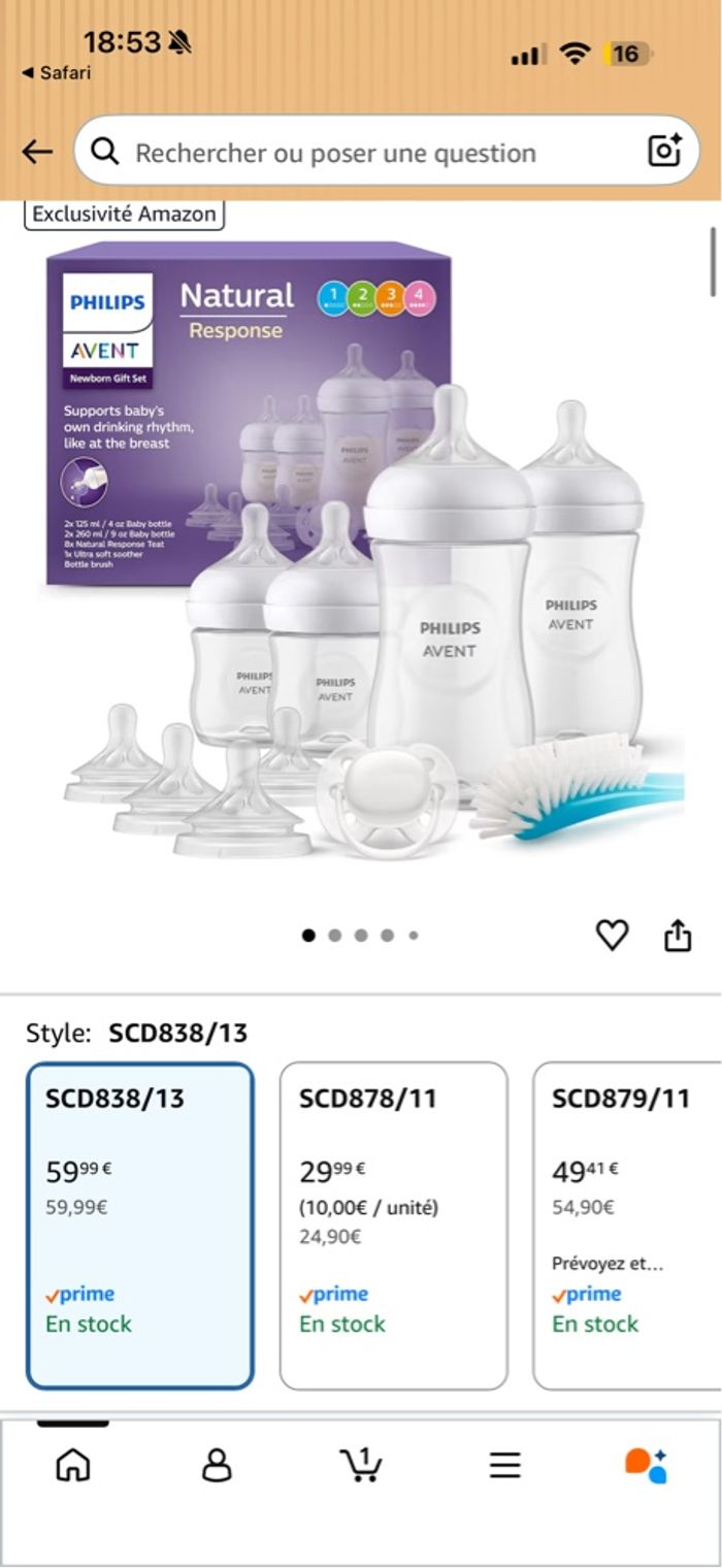 Bonjour, Je vends un lot de biberons Philips Avent Natural Response. Un seul biberon du lot a été « utilisé », le reste est complètement neuf. Raison de la vente : nous avons essayé de nourrir notre fille avec, mais elle n’a pas accepté. Nous les vendons afin de racheter d’autres biberons. Il se compose de 4 biberons de 260ml, 4 biberons de 125ml, deux tétines débit 1, quatre tétines débit 2, quatre tétines débit 3 et deux tétines débit 4, deux brosse pour nettoyer les biberons. Valeur du lot : 92€ (voir autres photos) Prix de vente : 70€