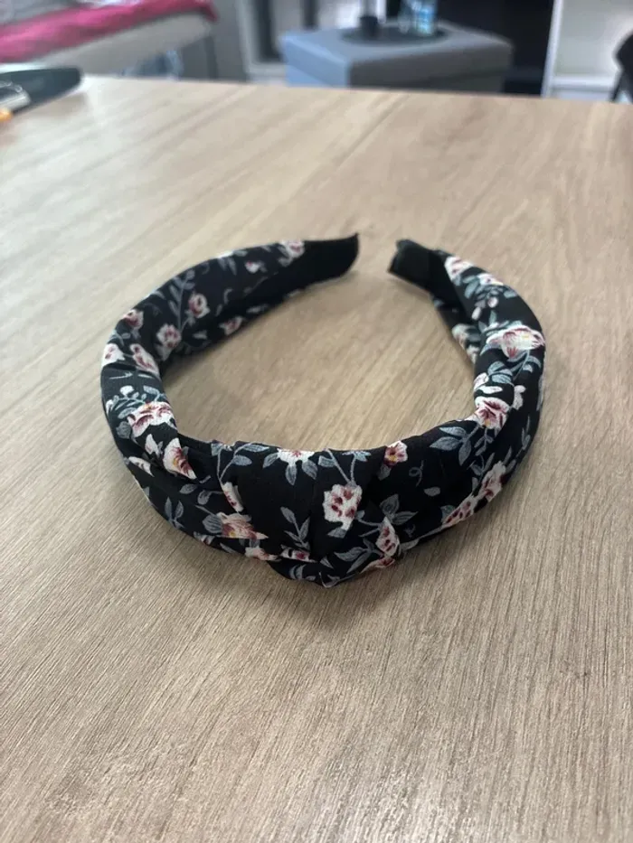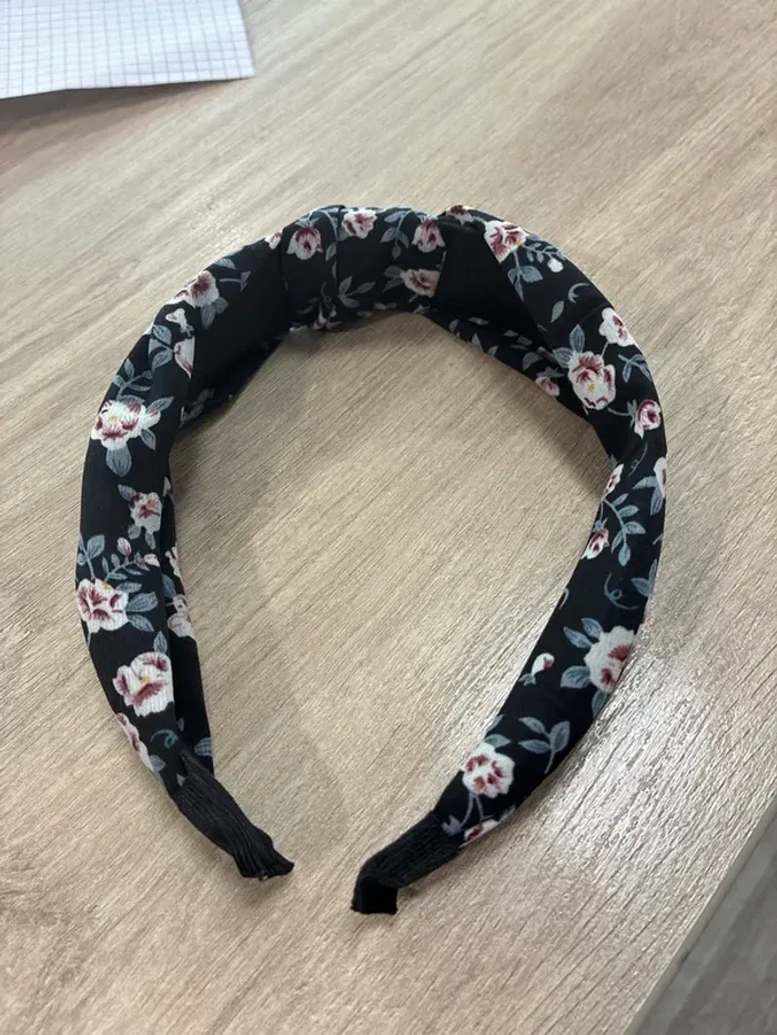Serre tête noir et motif fleurs Neuf - photo numéro 1