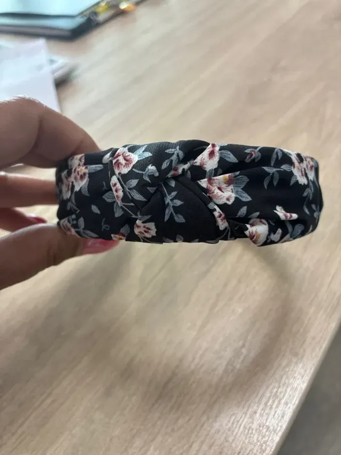 Serre tête noir et motif fleurs Neuf - photo numéro 3