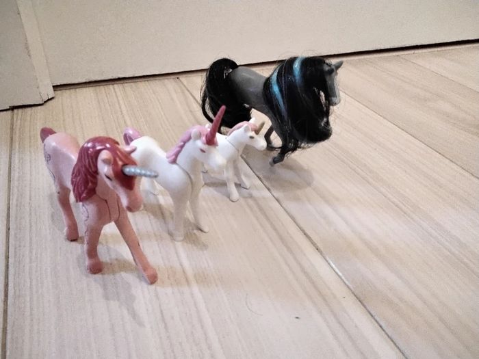 Lot 3 licornes et un cheval. En très bon état, aucune marque ou autre.