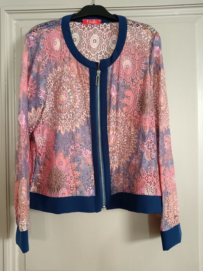 Jolie veste légère et transparente, belles couleurs, les mesures sont sur les photos, taille 3.