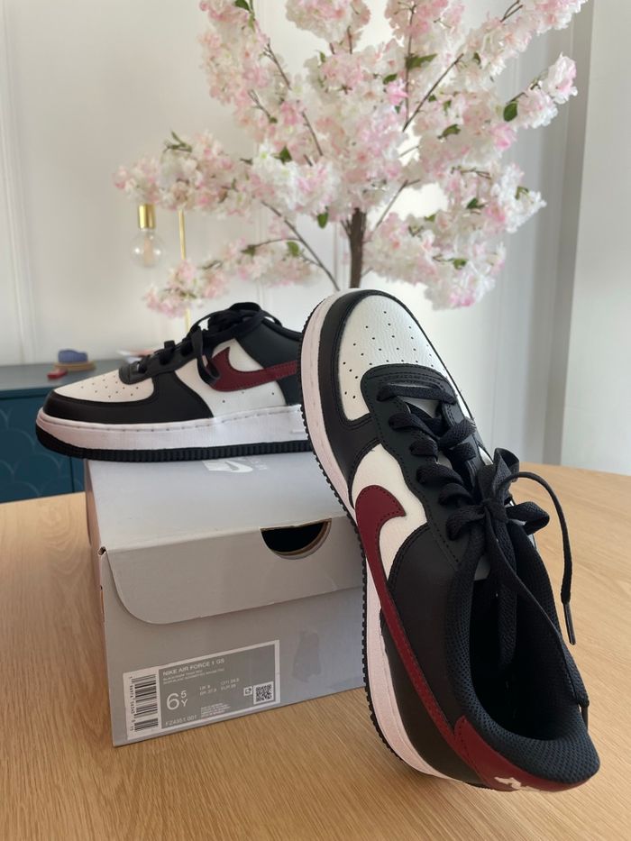 Bonjour, Je mets en vente cette AIR FORCE ONE 1 GS blanche/noire/bordeaux en taille 39 qui peut aussi bien aller à un enfant à une femme ou un homme. Elle est évidemment neuve et authentique. Le cuir grainé est magnifique Prix magasin : 95€ Prix de vente : 49€