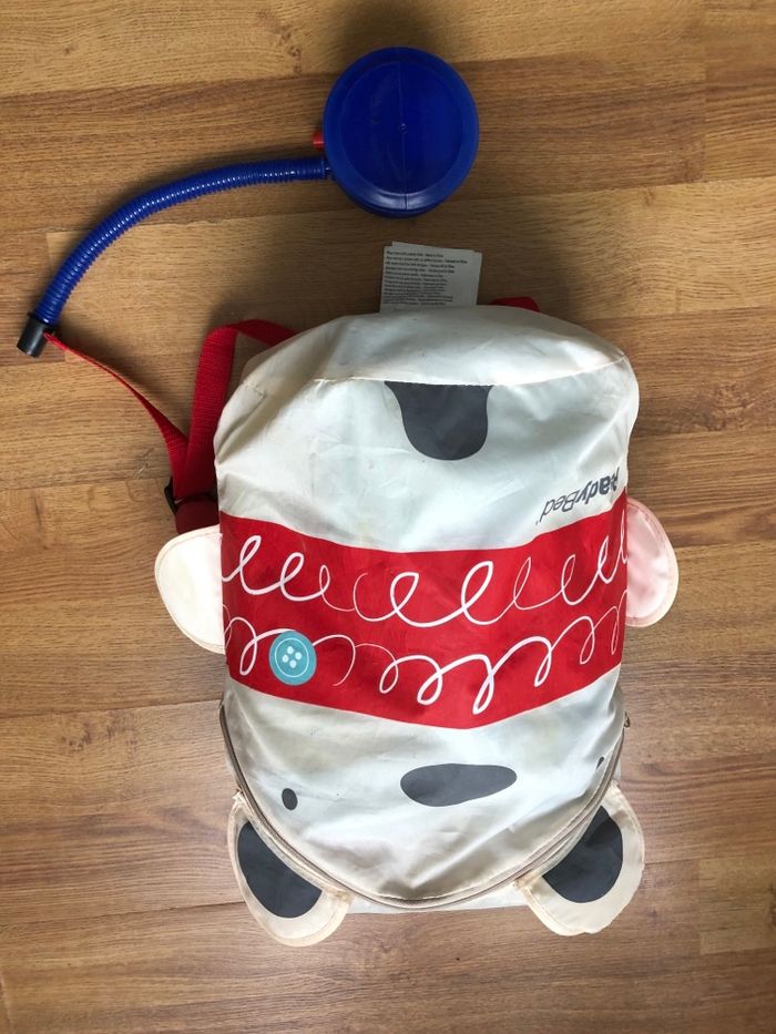 Readybed lit d’appoint gonflable idéale pour enfant de 18 à 3 ans Se plie dans son sac fourni avec pompe de gonflage. Déhoussable et lavable