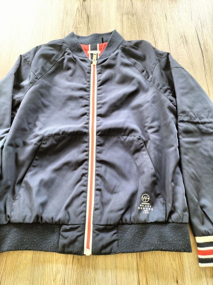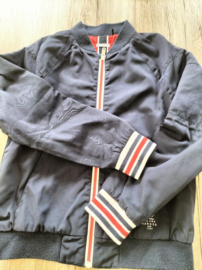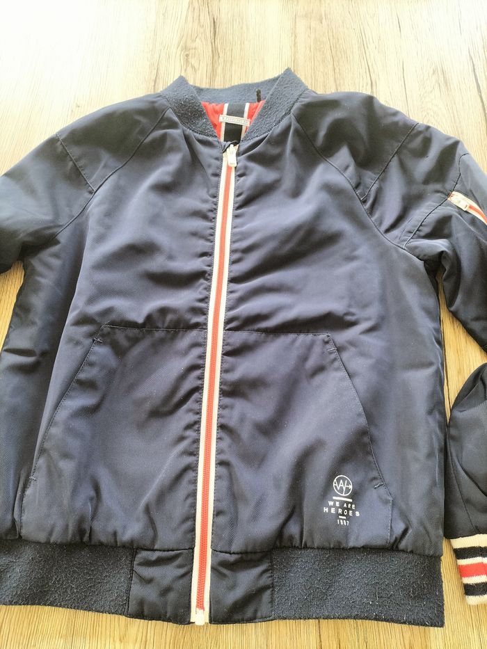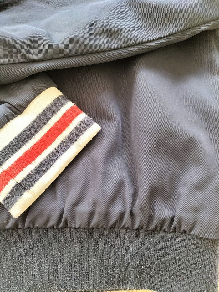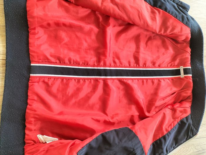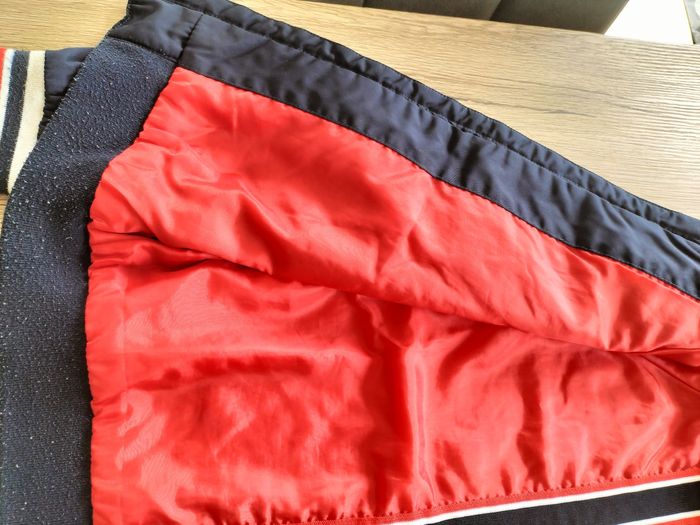 Blouson zippé marine Doublure rouge polyester En très bon état Juste un peu bouloché au niveau des poignets