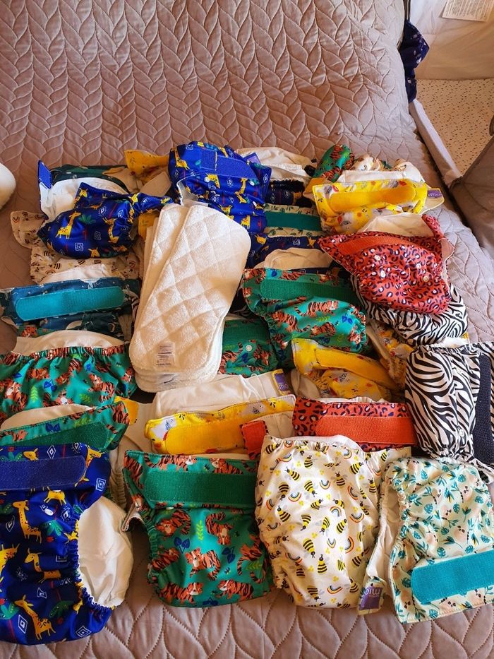 Lot 32 couches lavable et 6 booster. Très peu utilisé. 3 tachés voir photo.
