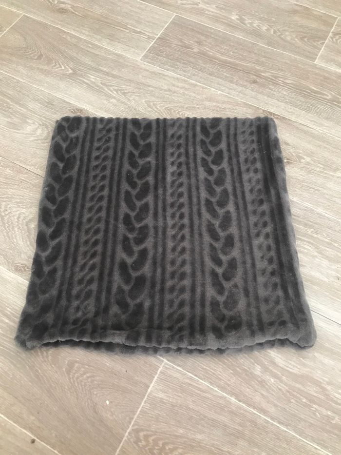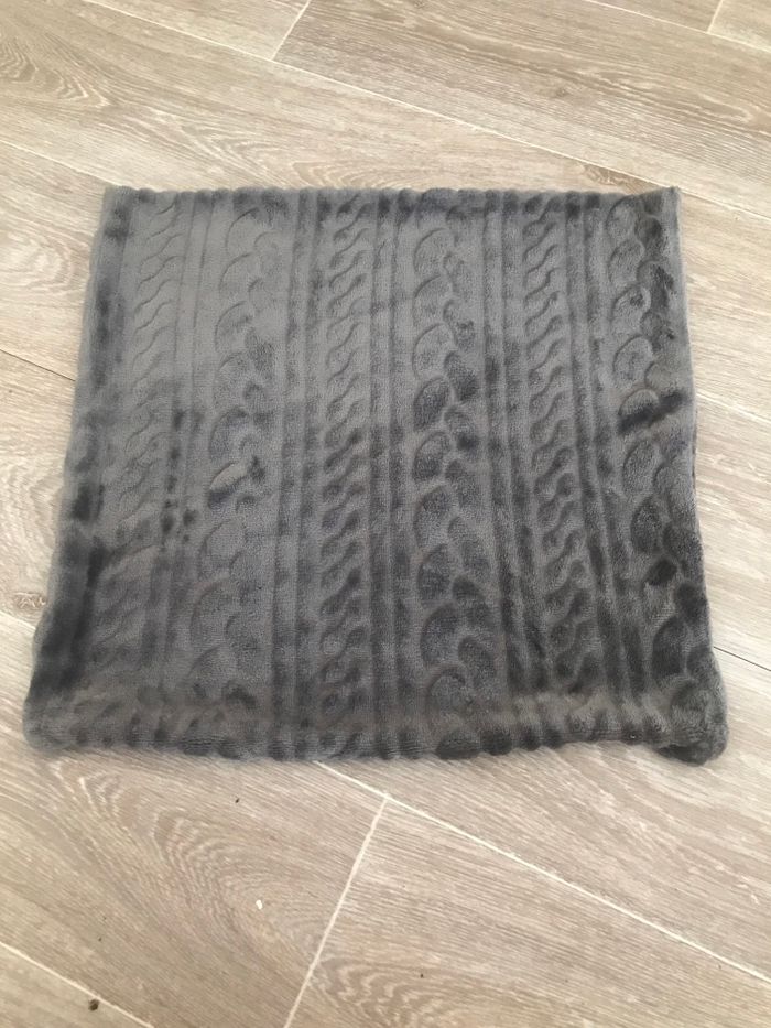 Trait oreiller couleur grise la dimension et de 42 cm de longueur et 43 cm de largeur