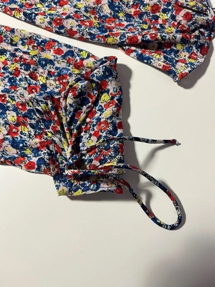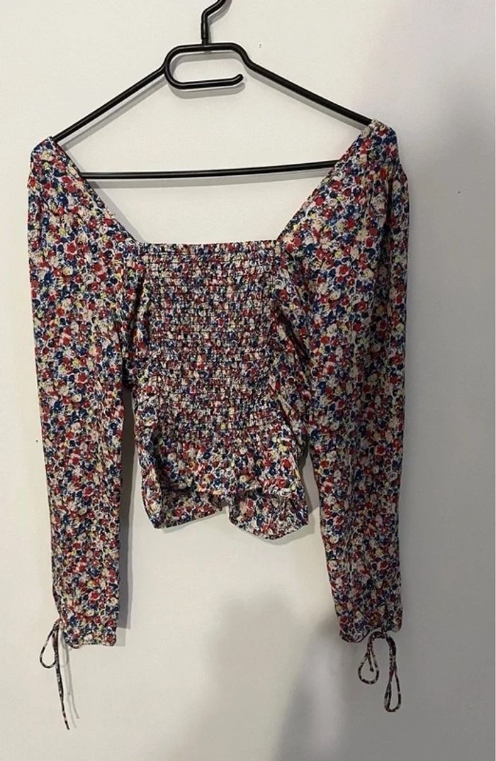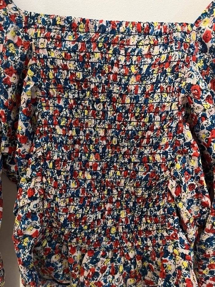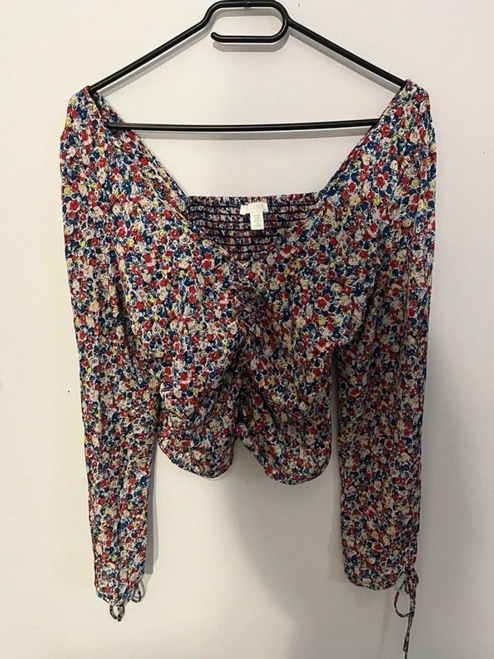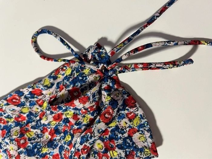 Petit haut bordeaux avec des fleurs ajourés et pompons