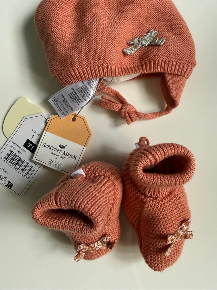 Bonnet et chaussons sergent major bébé fille neufs.