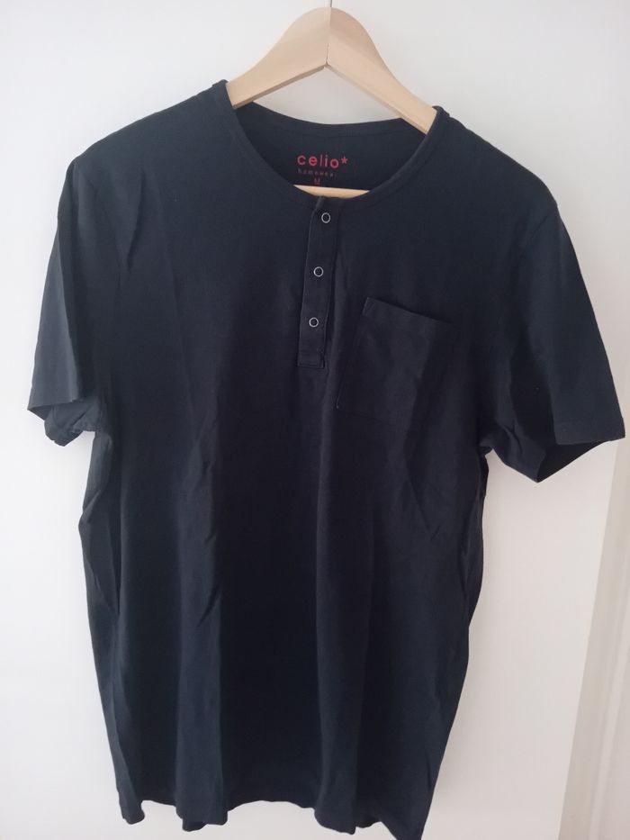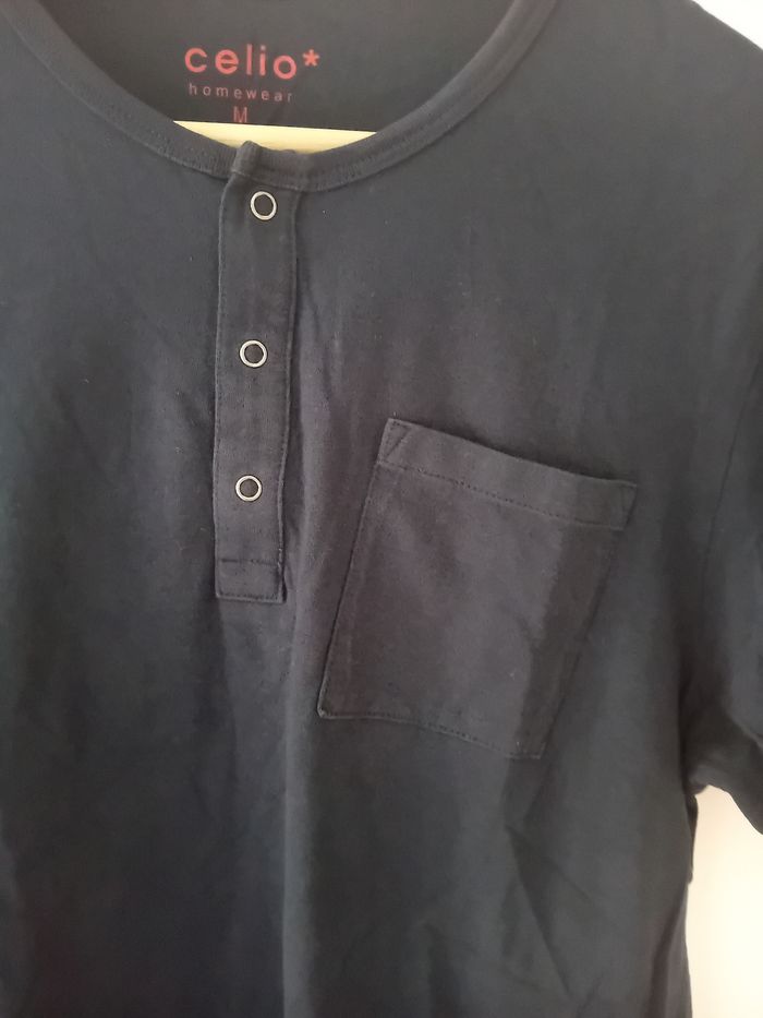 Tee-shirt bleu Celio taille M, très bon état. 3 boutons pressions et 1 vraie poche.