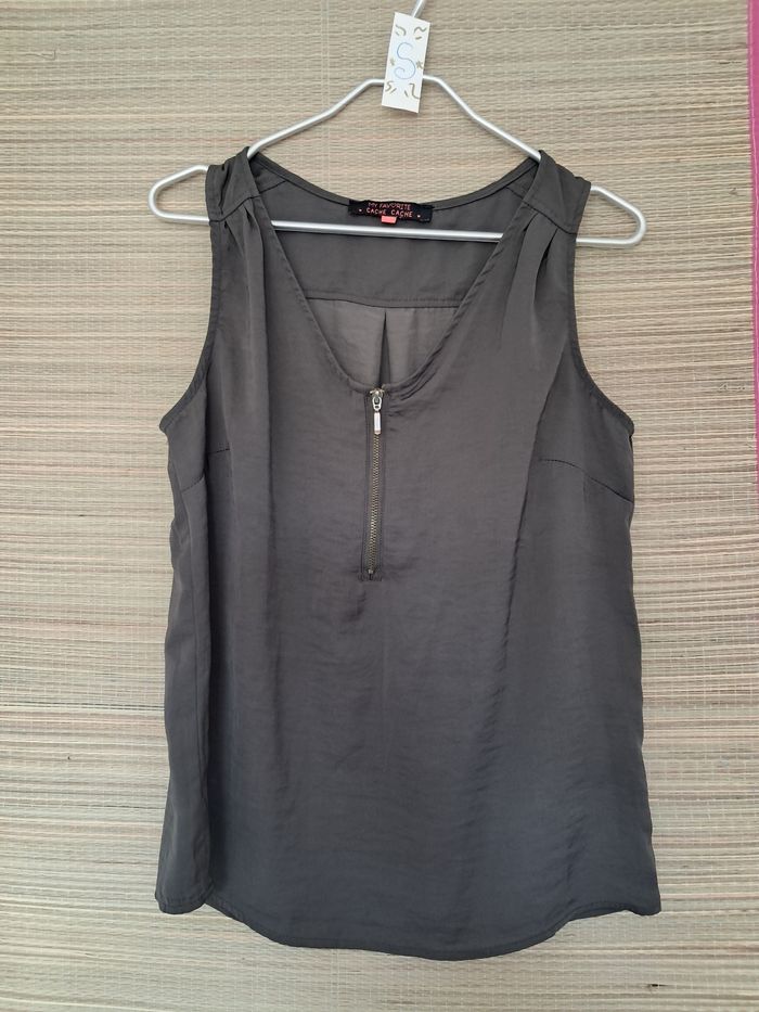 top caroll vichy bleu et blanc à volants - taille 40 - très bon état