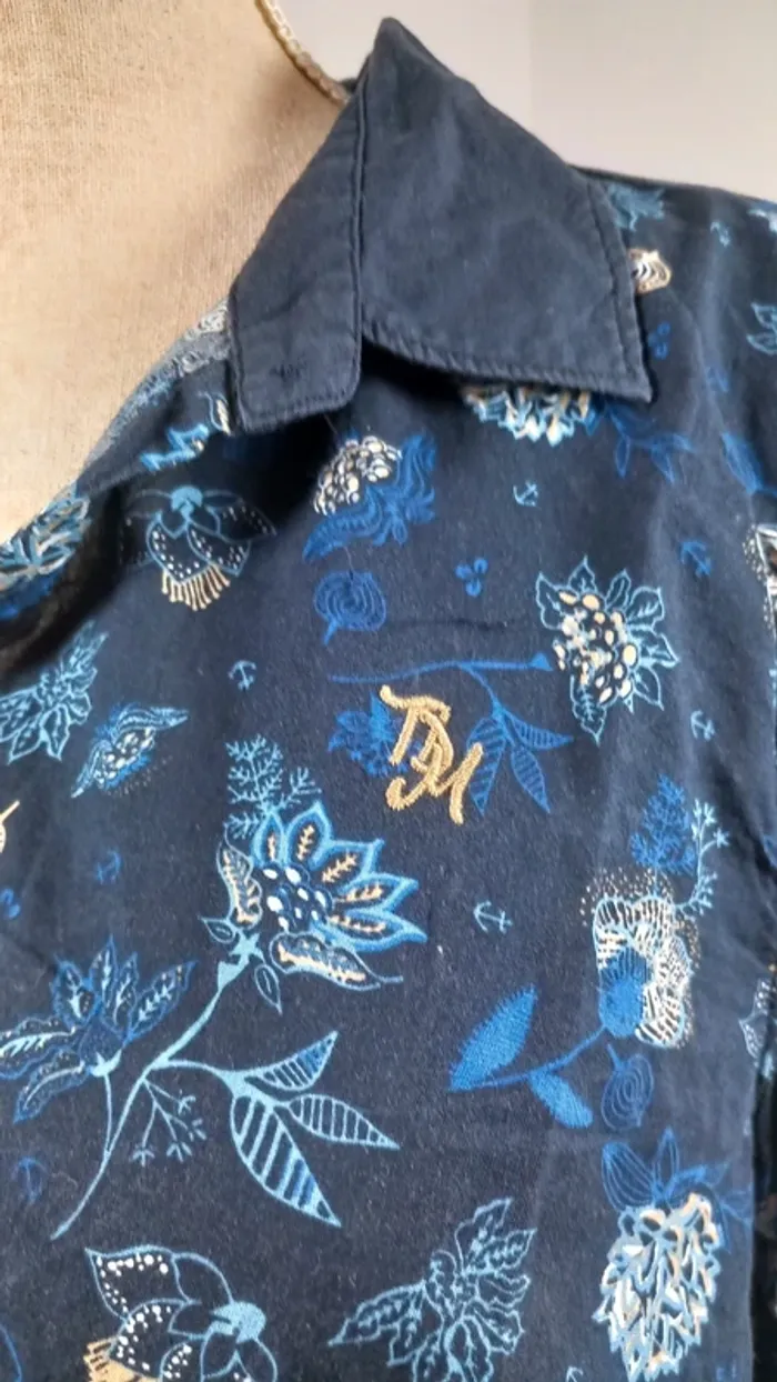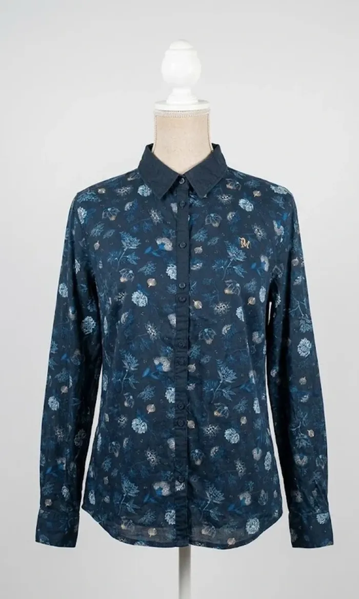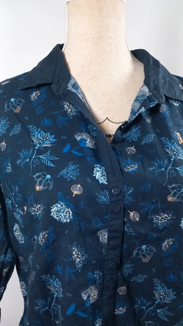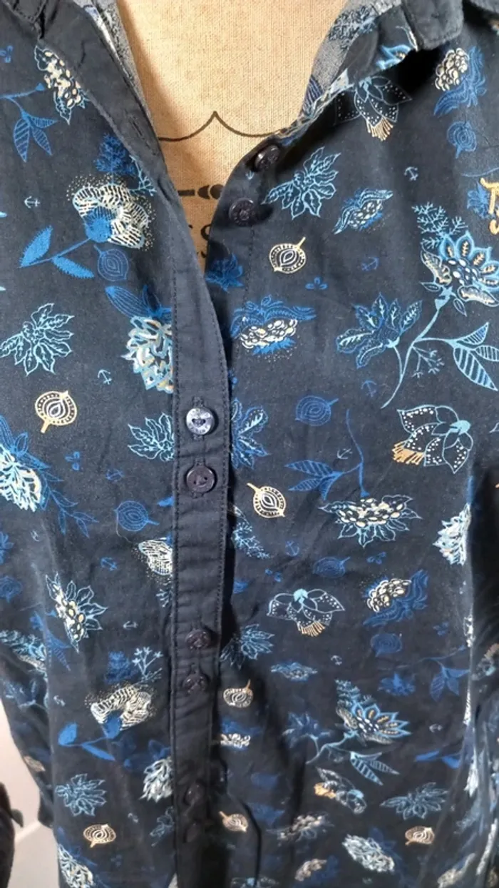 chemise femme terre de marins fleurie bleu marine - taille 40 - très bon état