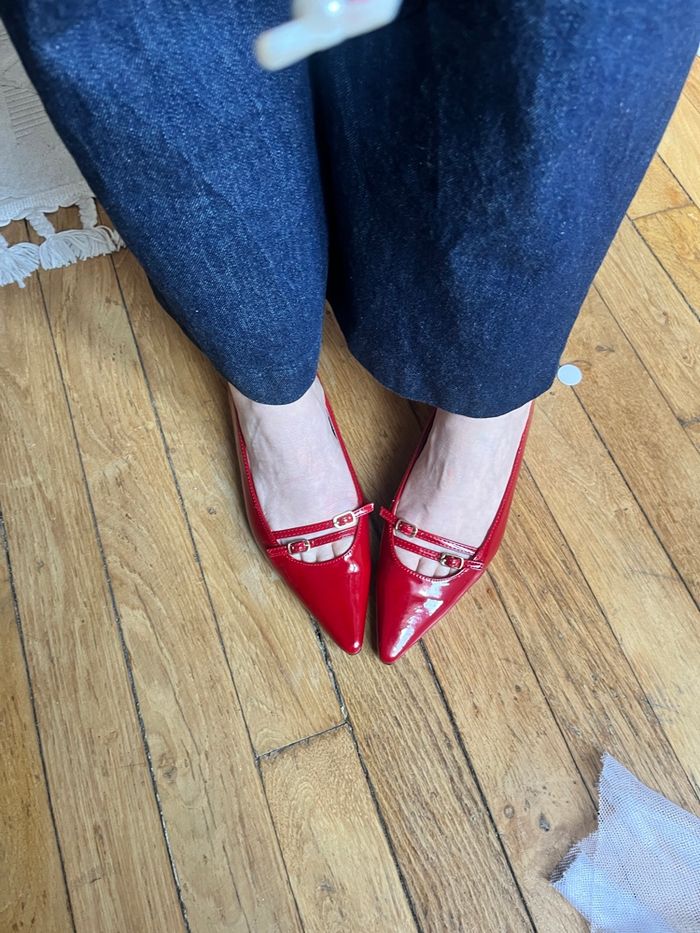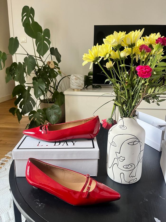 Escarpins en rouge, plats