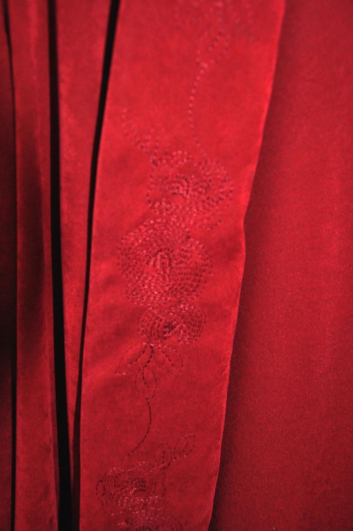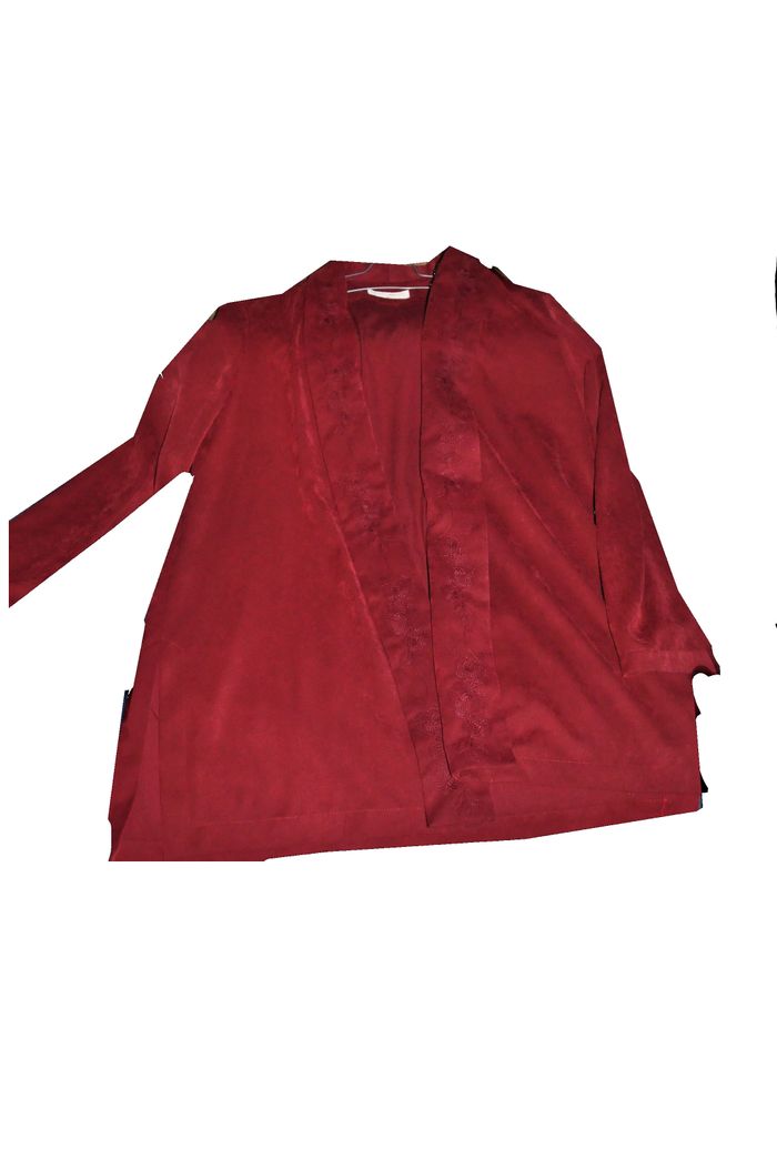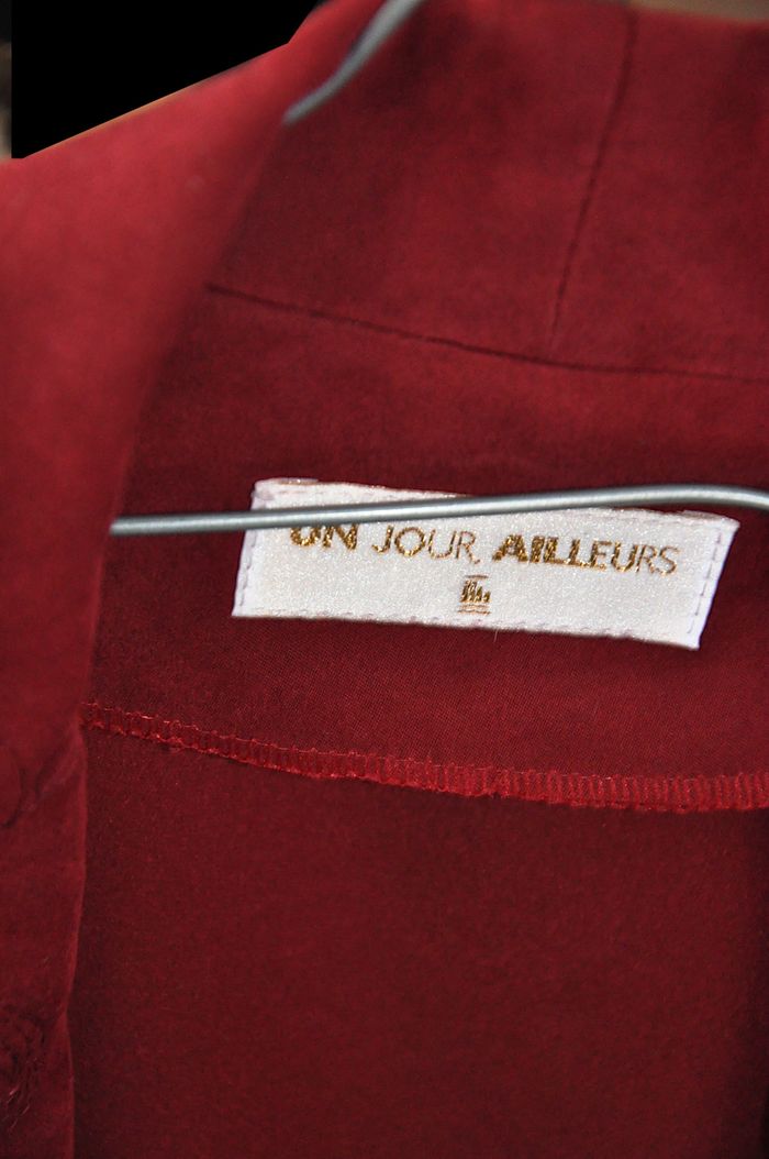 Très élégante veste rouge en polyester/microfibres brodée sur le rabat "un jour ailleurs" très pratique se lave en machine à 30°
