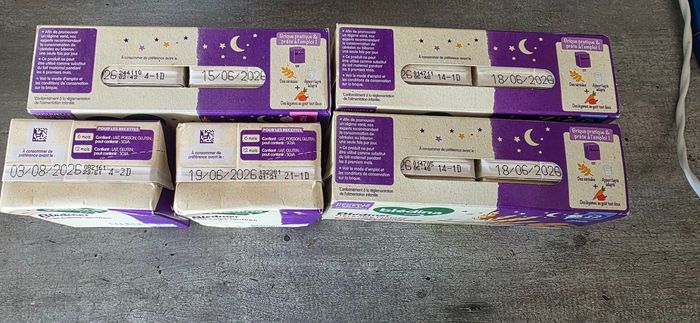 Lot 8 briquettes de lait légumes neuf Mon fils n'en veut plus 4 carottes petits pois DLC 18/06/2026 2 potiron DLC 15/06/2026 1 courgette DLC 03/08/2026 1 carottes 19/06/2026