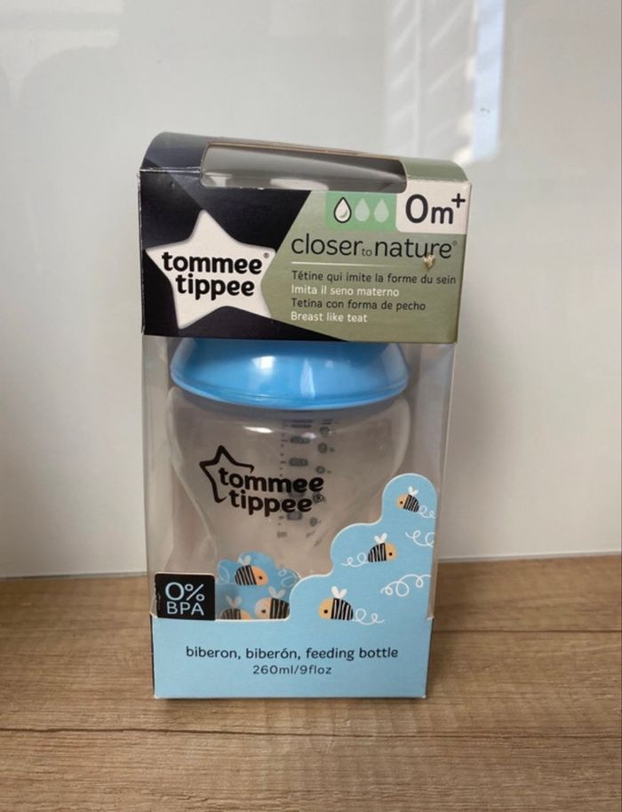 Biberon Closer to Nature Transparent 260 ml de Tommee Tippee. 260 ml - débit lent (0m+). Tétine qui imite la forme du sein, facile à saisir par bébé. Douce et flexible pour une alimentation naturelle. La tétine douce en silicone donne une sensation plus proche de la peau. Valve anti-colique ultra sensible pour une tétée tout en confort. Biberon facile à tenir avec tétine à débit lent. Sans BPA, pour une tranquillité d’esprit optimale. Utilisé 1 fois.