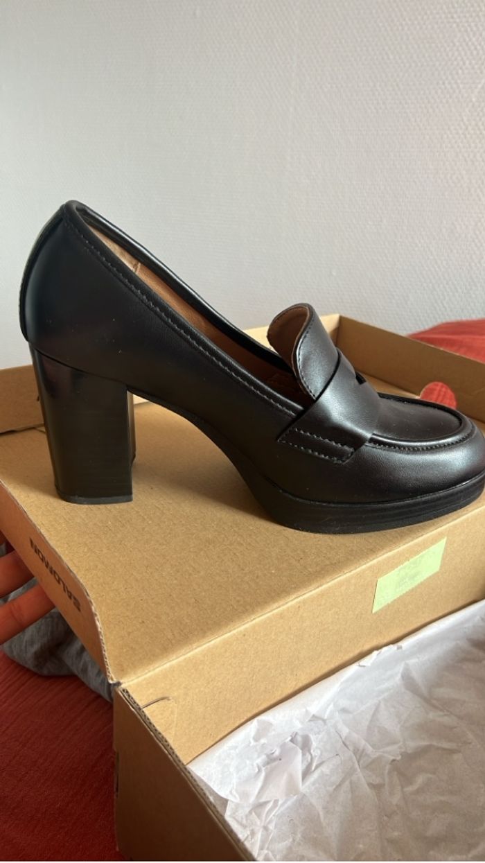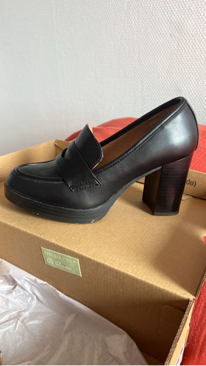 Mocassin noir à talon à vendre car je me suis rendue compte que je ne les portais jamais. Confortable. Jamais portée. Marque Anna field.