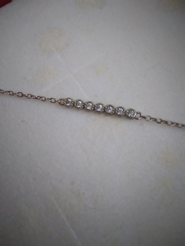 Bracelet argent rhodie "ava" oxydes de zirconium 19cm Marque: Histoire d'or Ils s'agit d'un cadeau mais je ne porte pas de bracelet donc il est neuf Acheté le 27 mai 2022 Certificat d'authenticité disponible Boîte + emballage Le coussin blanc est tâchés