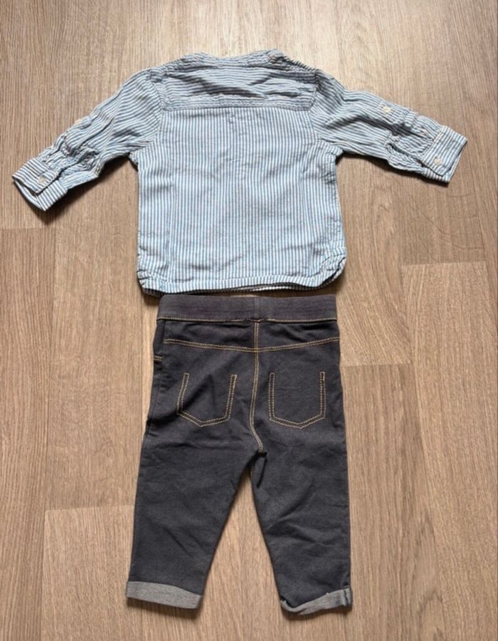 Ensemble 6 mois en très bon état, pas de tache ni trou. Chemise Kiabi Jegging Tex