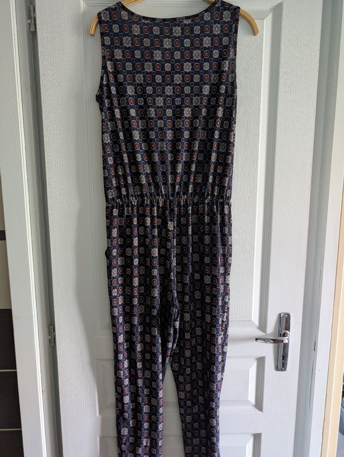 Combi pantalon été sans manches pour femme. Légère usure sur la perle de la fermeture éclair (voir dernière photo). Marque : Camaïeu Taille : 36 Bon état