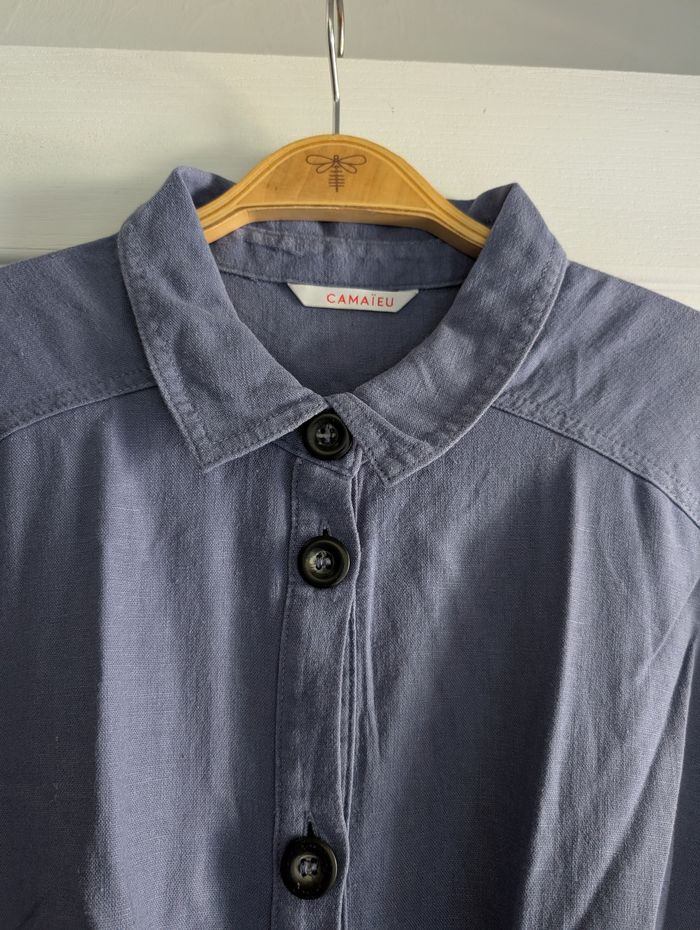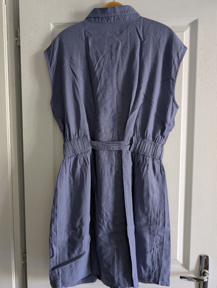 Robe sans manches avec ceinture. Couleur bleue façon Jean. Marque : Camaïeu Taille 36 Bon état