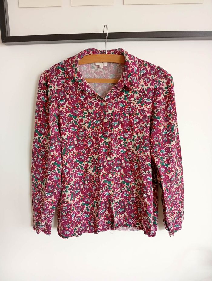 chemise femme terre de marins fleurie bleu marine - taille 40 - très bon état