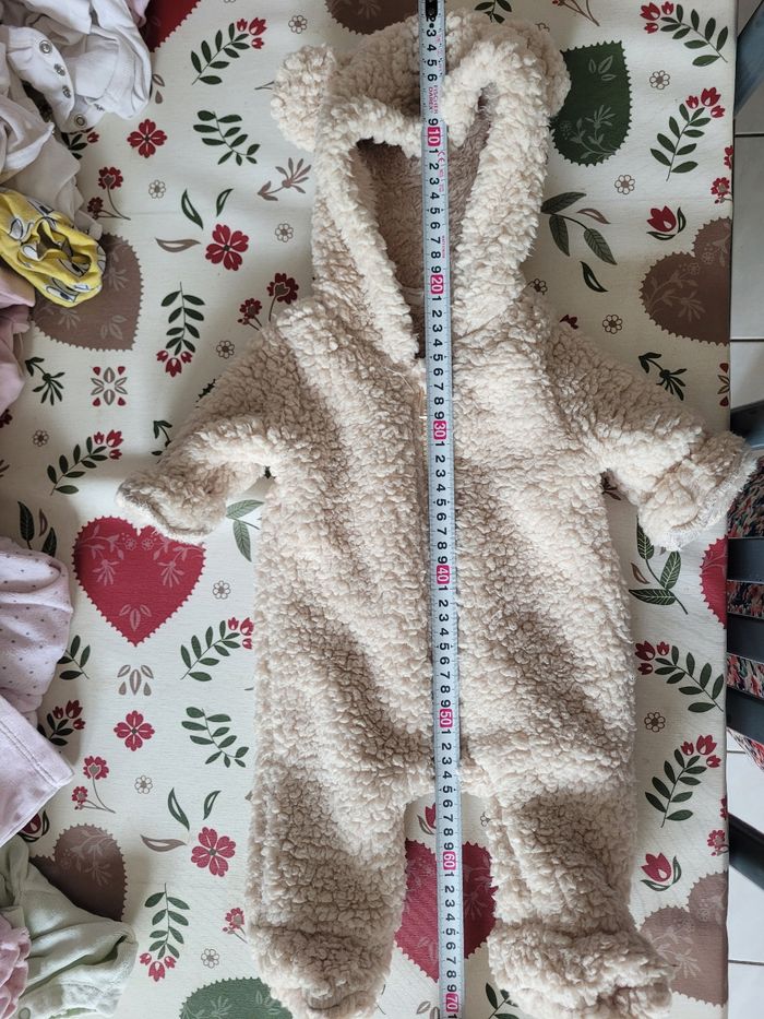 Combinaison style laine avec capuche avec des oreilles d'ours et une rose et bleue toute mignonne.