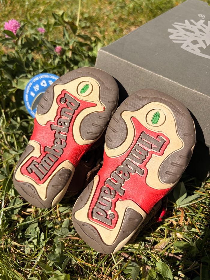Jolies sandales bébé garçon TIMBERLAND Taille 20 mais correspond plus à 19/20 Tout en cuir Kaki militaire et marron En très bon état, quasi neuves : ont été portées quelques fois par mon petit garçon non marchant (en situation de handicap) Donc n’ont pas pris la forme du pied.