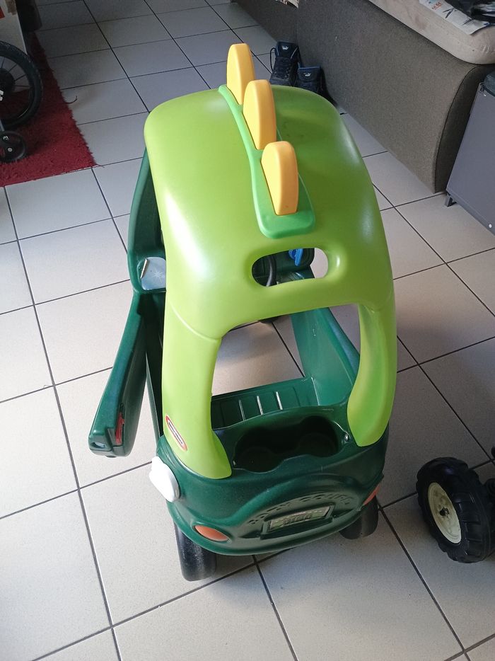 Voiture enfant porte golbet a l arrière porte qui s ouvre mais une seule l enfant fait avancer la voiture en marchant klaxon petites poussière a prévoir