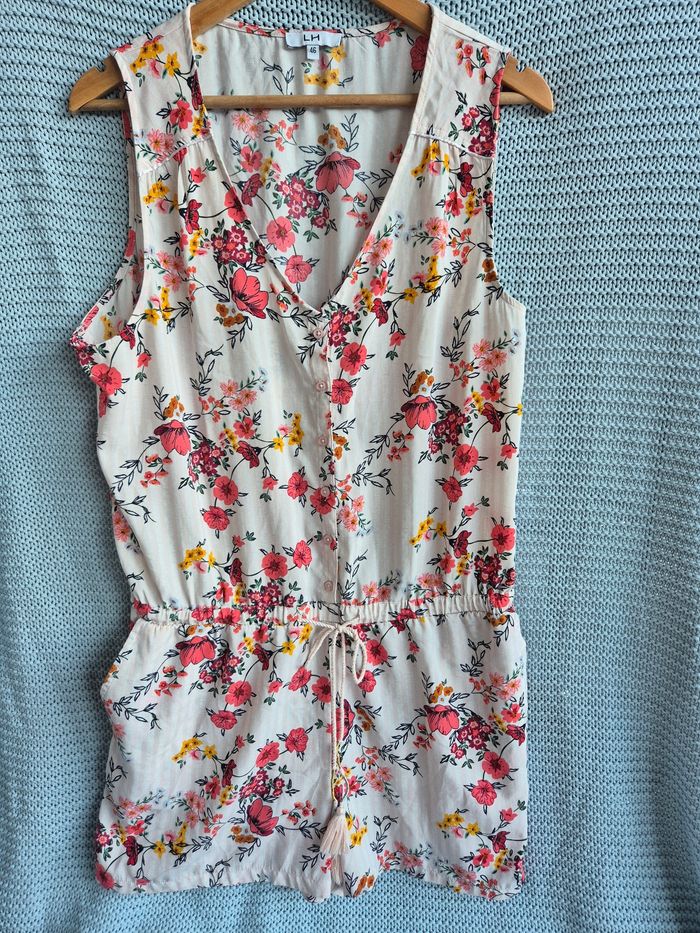 Combinaison fleurie boutonnée sur le devant, noeud à la ceinture. Marque La Halle. Taille 46. #mimidacfemme #mimidacfemme46
