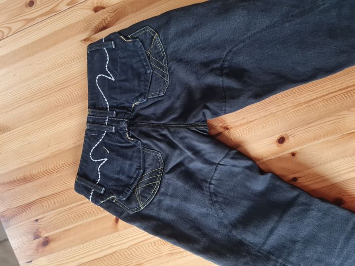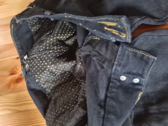 Pantalon moto femme matière Jean. Doublé. Renforcement Kevelar fessier genoux et coté extérieur des jambes. Taile basse. Taille S