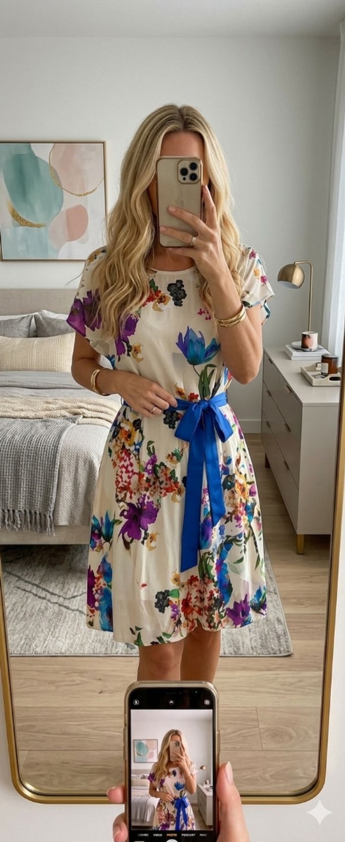 Robe à fleurs, entièrement doublée avec la combinaison réglage Viscose tissu très agréable à porter pour l'été Au niveau des genoux Article neuf Taille 36 allemande et 38 taille française