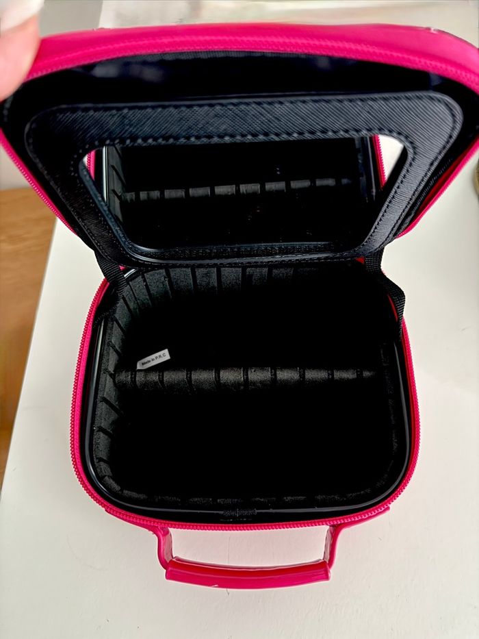 Trousse Huda Beauty La fermeture du coin haut droit bloqué légèrement mais elle s’ouvre et se ferme bien.
