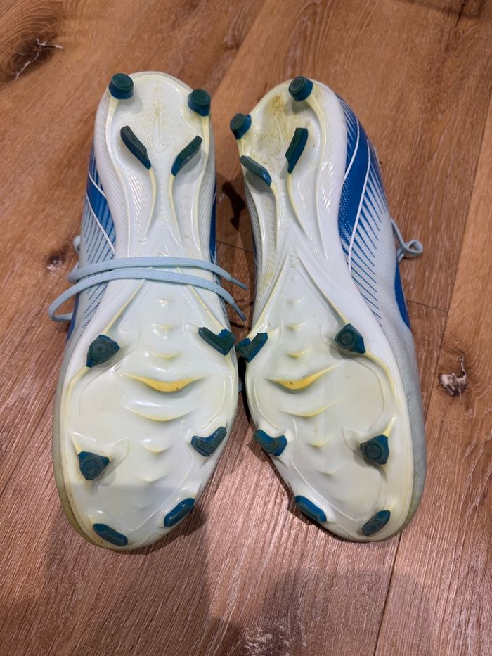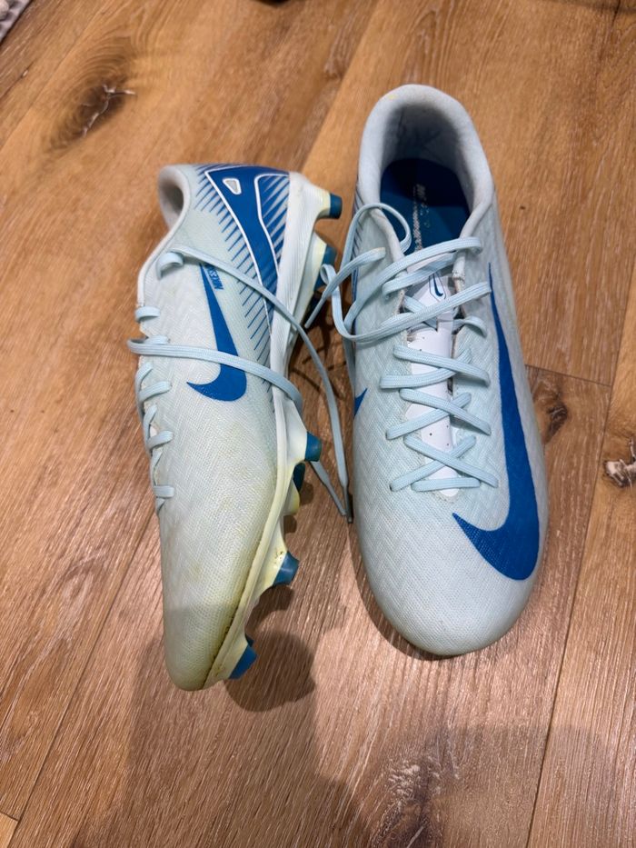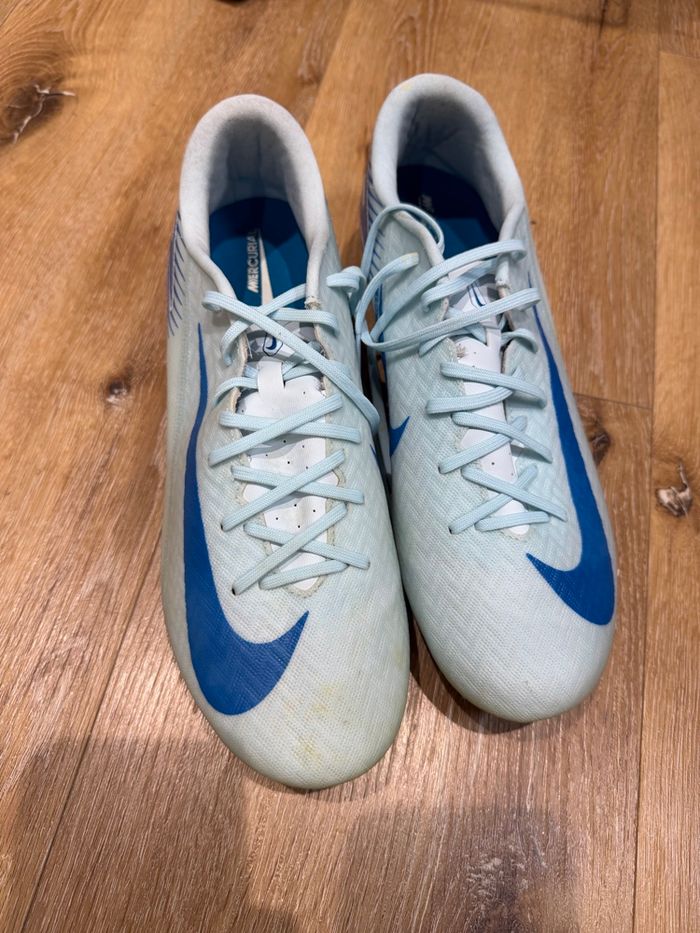 Je vends ces crampons de football Nike. - Type de produit : Crampons de football - Marque : Nike - Sports/Loisirs : Football Taille 44 Bon état quelques taches vertes du au gazon comme vous pouvez le voir sur les photos N'hésitez pas à me contacter pour plus d'informations.