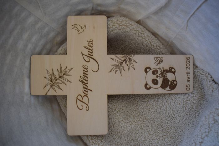 Croix de baptême personnalisable - autre thème sur demande. Dimensions : 21x29cm Envoie rapide et soigné.