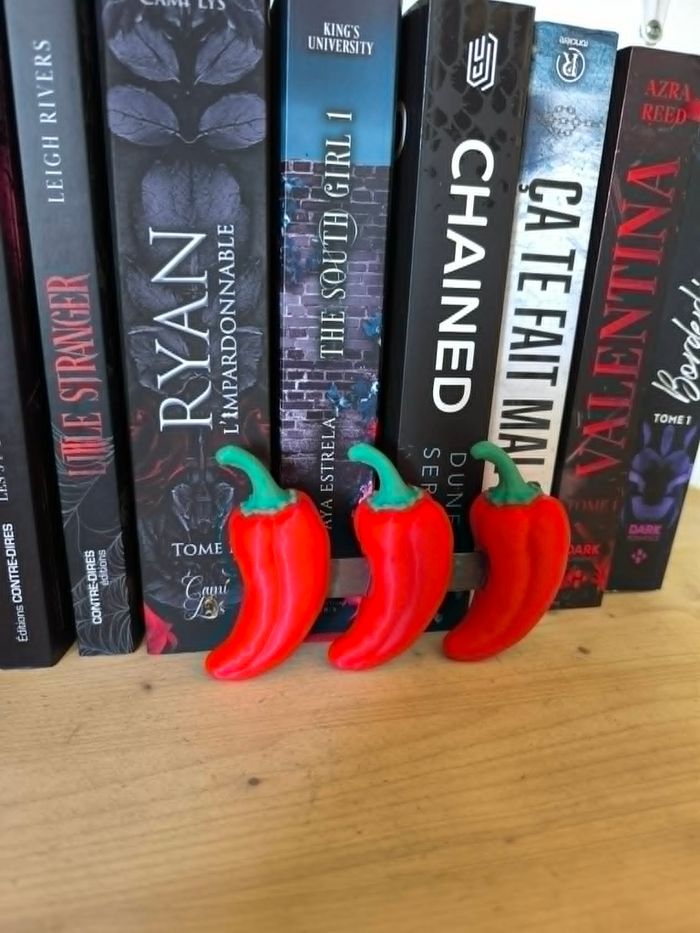 Décoration spicy piments – Impression 3D – Déco Unique / Idée Cadeau 🔥 décoration en impression 3D, au design original et moderne. Qui attire immédiatement le regard 👀 Parfait pour : ✔️ Décoration de bureau / étagère / bibliothèque ✔️ Passionnés de Lecture ✔️ Cadeau original et différent 🖤 Couleur : rouge 📦 Envoi rapide et protéger ⚠️ Chaque pièce est imprimée en 3D → légères variations possibles, ce qui rend chaque modèle unique. 👉 N’hésitez pas à me contacter pour plus d’infos !