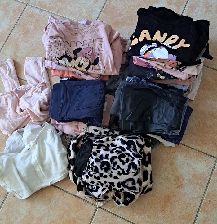 Lot mi saison 2 bolero dont 1 bonne etat 1 gilet 3 robe 11 legging long dont 2 avec petit defaut 2 leggings court 6 pyjama dont 1 en bonne etat (tache) 1 haut de pyjama bonne etat 4 jeggings dont 1 avec bouloche 17 tshirt long Diverse marque