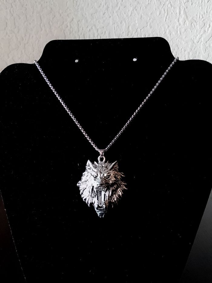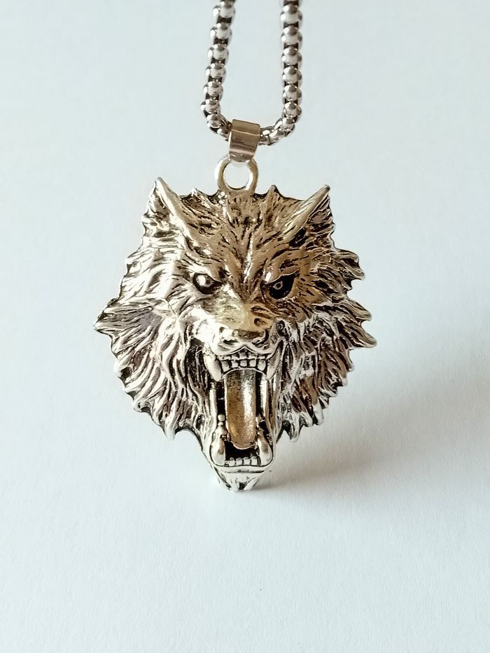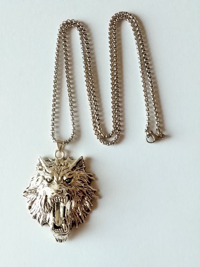 Chaîne + pendentif celtique. Pendentif : tête de loup (celtique, protection, spirituel, idéal cadeau) DESCRIPTIF : Couleur : argenté. Taille chaîne : 60 cm Diamètre pendentif : 4 cm L * 5,7 cm H Envoi rapide et soigné.
