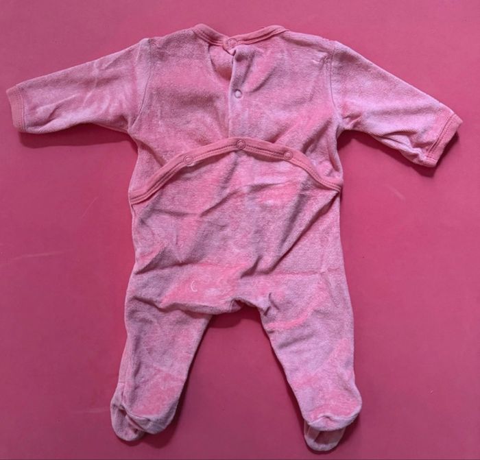 Pyjama 1 mois hivers, porté en bon état Il est bien rose bonbon sur la dernière photo je ne sais pas pourquoi mon téléphone a changer la couleur